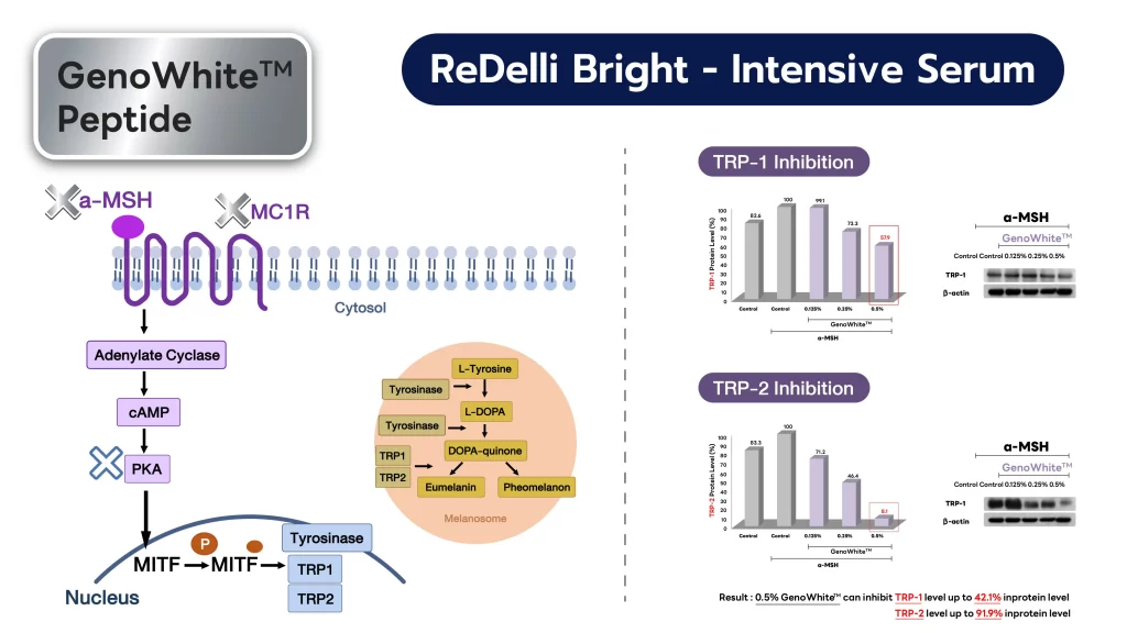 เมื่อได้รับสัญญาณ เอนไซม์ Tyrosinase จะเปลี่ยนกรดอะมิโนไทโรซีน (Tyrosine) ในผิวให้กลายเป็นเมลานินทั้งชนิดสีเข้ม (Eumelanin ทำให้ผิวคล้ำเสีย) และสีอ่อน (Pheomelanin พบในคนผิวขาว)